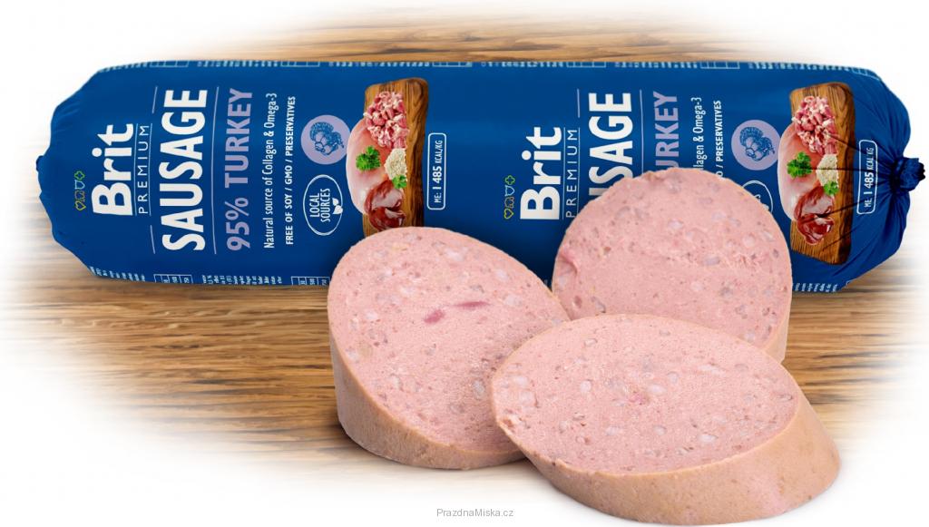 Jedná se kompletní krmivo pro psy, které je chuťově velmi lahodné a pejsky žádané. Díky vysokému obsahu masa (95 % krůtí) je tato strava velmi prospěšná. Salám obsahuje krůtí maso včetně vnitřností. Kombinace krůtího masa a rýže je ideální pro psy bojující s nadváhou. Dále je tento salám vhodný i pro psí seniory. Brit Sausage Turkey nezpůsobuje přibírání. Zajišťuje optimální váhu pejska.