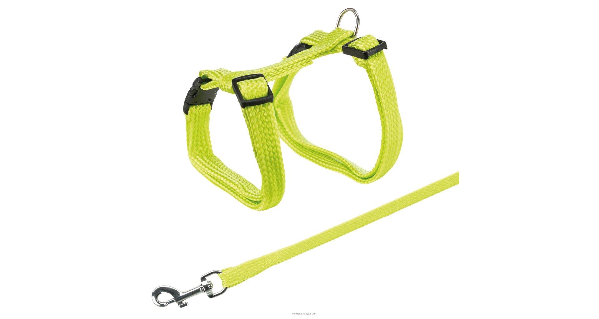 Postroj s vodítkem pro kočku jednobarevný 22-42cm/10mm 1,25m