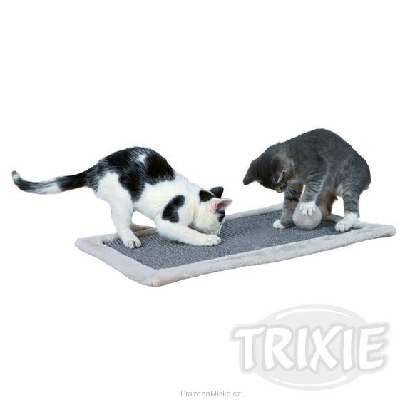 Tato škrábací deska je určená k pokládce na zem díky svým rozměrům umožní hru více kočiček. Vše spestří plyšová kulička přichycená k desce na šňůrce. Lemování desky je obaleno plyšovým materiálem.