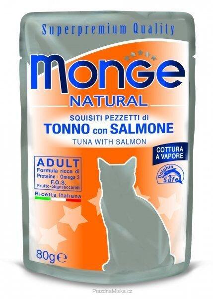 MONGE NATURAL kapsička tuňák v želé s lososem pro kočky 80 g